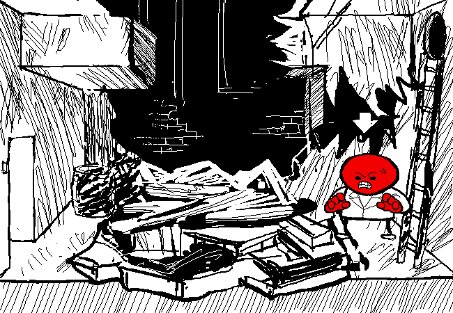 You fall right into MK's trap, and slide down the DUMBWAITER SHAFT into the back room of your office.