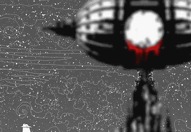 It is directly behind the CATHEDRAL OF SYNDETIC ASCENSION, its face in precise alignment with the cathedral's eye. It approaches the strike of midnight.
