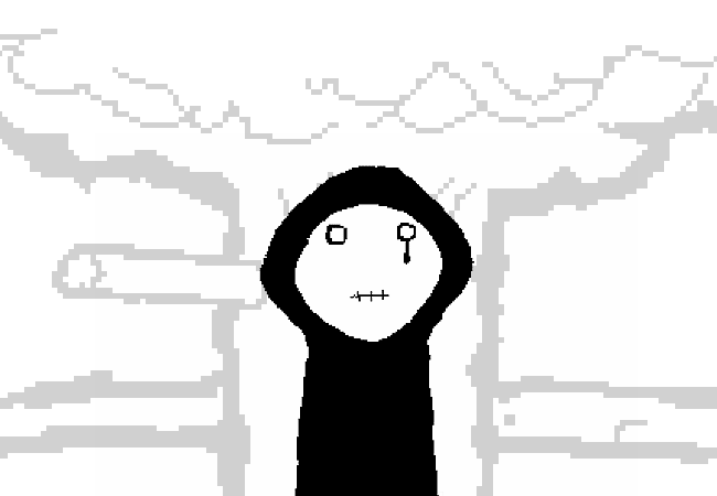 The loss of his beloved weapon has caused Death to shed another tear of black liquid sorrow.