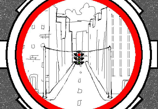 The PART-PICKLE accelerates himself through one half of the makeshift collider.