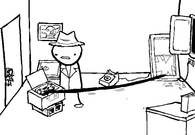 The reel begins to turn, pulling the tape taught. The cinderblock below does not budge. If the tape is re-tied to a lighter object, it will likely be pulled in through the window automatically.