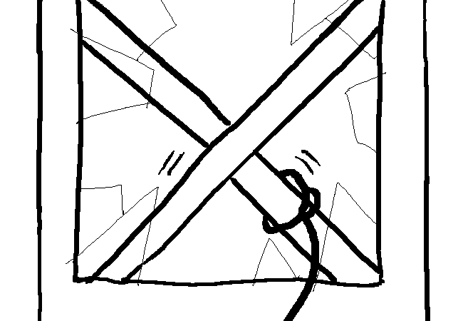 The scaffolding is jammed in place! It seems the brake for the wheels was triggered after it came to a stop. You can't push it away either. The top just bumps up against the ceiling. There's no climbing out of the window with your portly frame because of the scaffold bars.