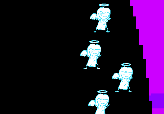 Due to principles of uncertainty regarding the existence of angels in a vacuum, each splits in to ANGEL/ANTIANGEL PAIRS.