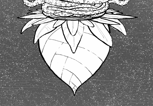 The VULNERABULB blooms, exposing DMK's FETAL SEEDPOD. If it is allowed to detach, it will mature into a new and revitalized DMK.