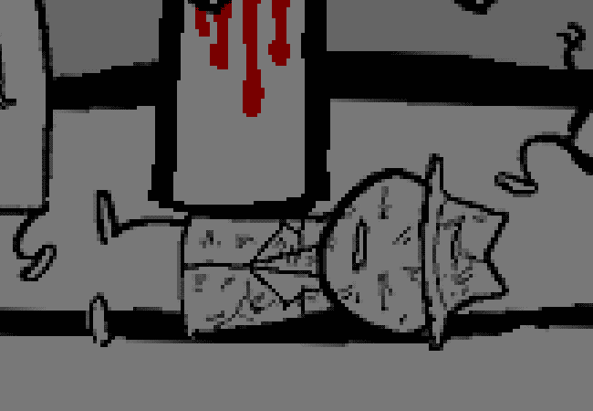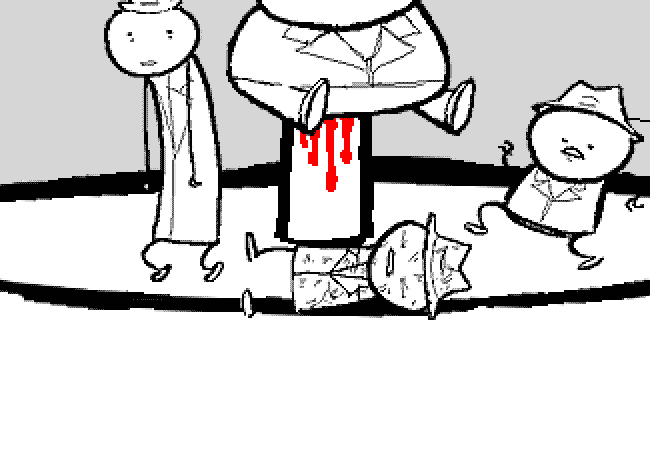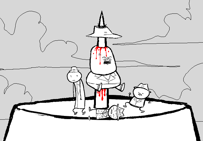 While the others set their feet aflutter with riotous mirth, our hero is in no condition for merriment.