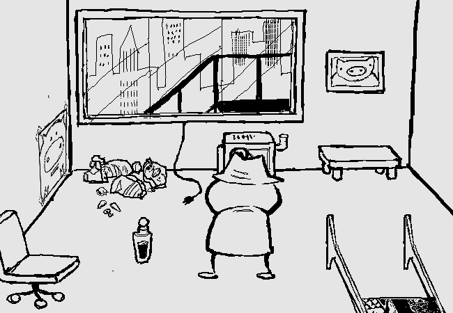 Amidst the rubble is a couple pieces of CANDY CORN, and a SMALL KEY.