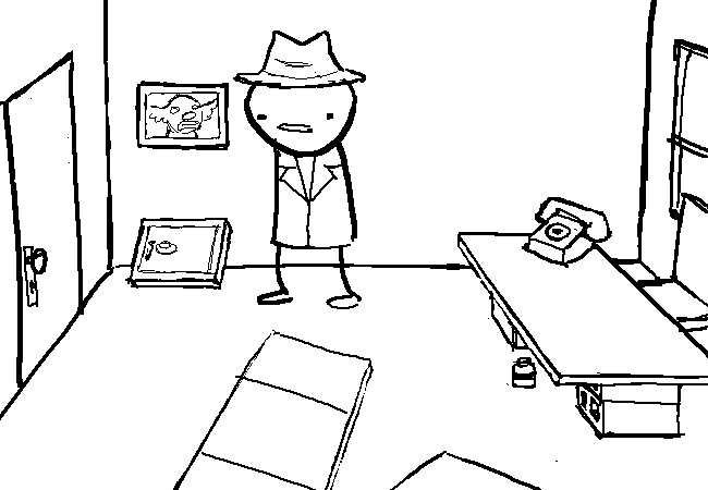 There is a flask of whiskey under the desk.