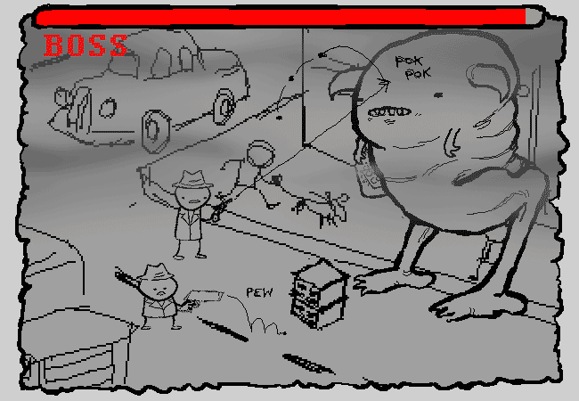 Your imaginary guns seem to be no more effective than pea shooters. Ace's bullets barely manage to clear the barrel.