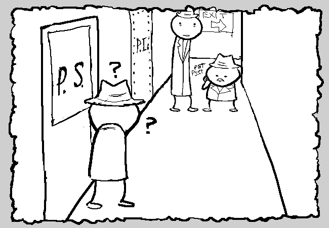Ace Dick is whispering something to the lanky fellow. You smell a plot. Your mind furiously sets to work on a way to disrupt their connivings.