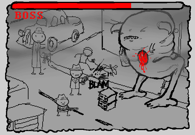 You fire your CANDY CORN HANDGUN at the monster. It takes heavy damage from the projectile treats.