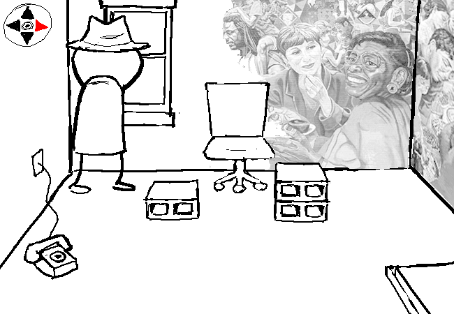 You face EAST in the room to look out the window. Bright daylight floods the room through the glass. You've always been a stickler for natural light. This is the only source of light in the room.