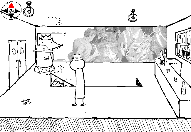 You face NORTH. There is another stunning mural on the wall, as well as a mysterious poster behind the bust.