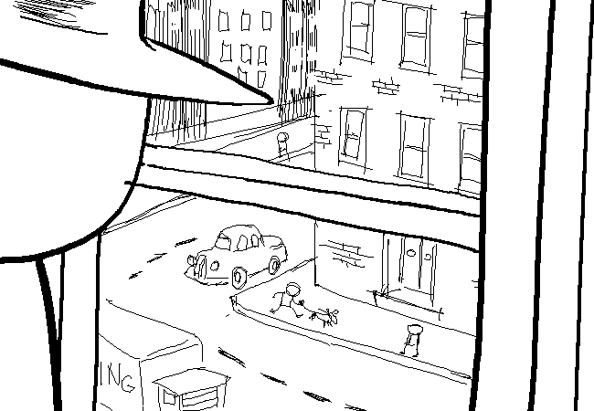 It's the view from your third floor office. You gaze abstractedly at the commotion below. Same scene, same faces every day. It's like it hardly ever changes. Not that you can afford to pay much attention to scenery, with your mind wrapped around the latest problem to sleuth, and your lips, around your flask.