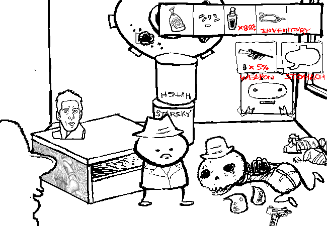 You are a little disgusted to find a skeleton in your office. You nevertheless rifle through its belongings.