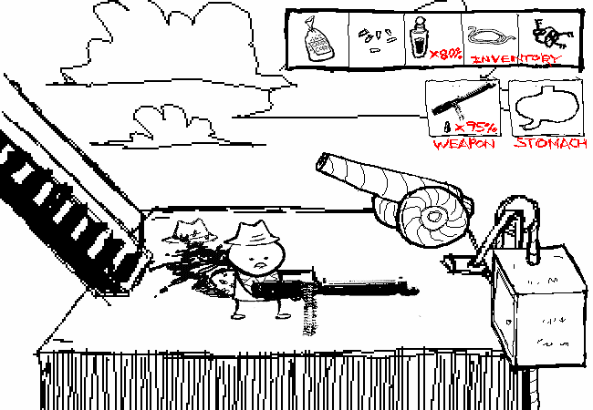 You pick up the MACHINE GUN. A brute like you is easily able to wield the heavy weapon.