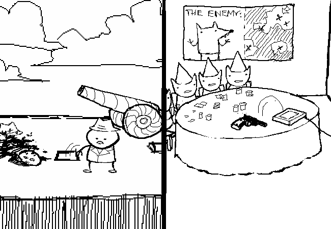 AD: Drop handgun through skylight.