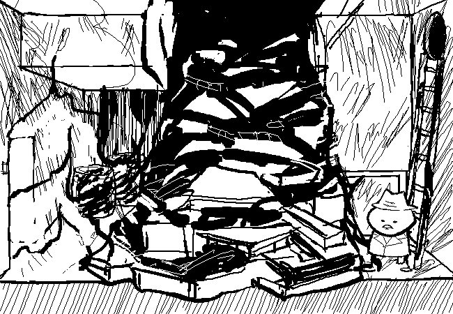 Parts of the wall and ceiling have collapsed. The path is blocked!