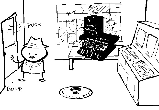 It can only open part of the way, into a very dark room. It bumps up against something totally immovable.