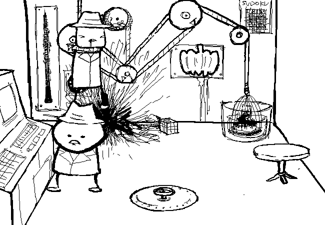It releases the lock on the hatch. A vertical column extends upward. But it bumps into the ceiling before the column's entrance can be fully revealed.