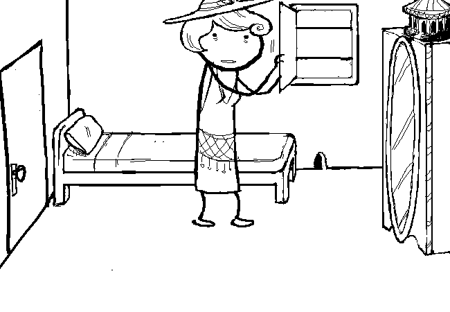 As you push the mirror, you notice your own reflection. Your frayed nerves have caused you to look dreadful. Your makeup could use some freshening.