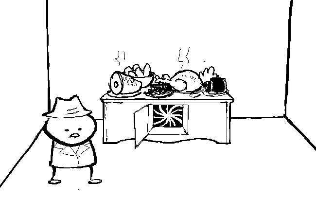 AD: Open buffet cabinet.