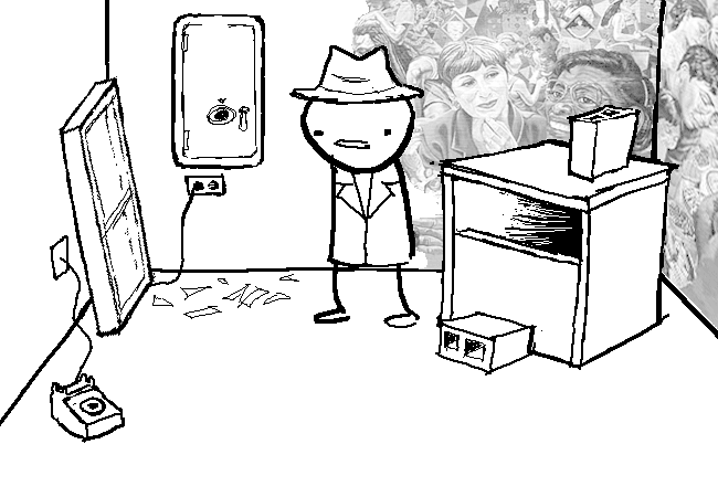 The window/light box is plugged into the wall behind it. The false window was concealing a large safe.