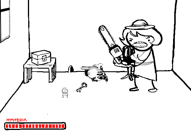 You start flipping out with the CHAINSAW. You saw the Fancy Santa in half. There was a CAROUSEL KEY inside.