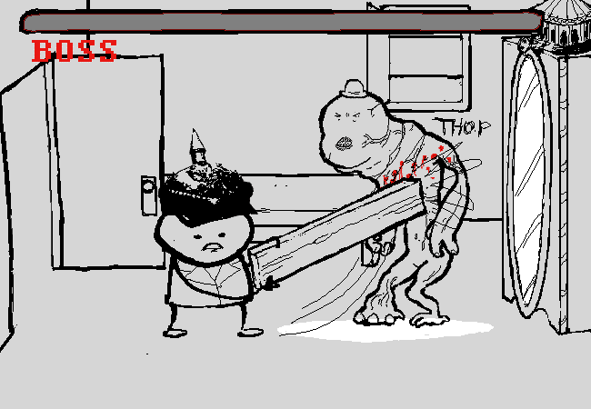 Ace Dick busts through the door and smacks the beast with the ROMANCE NOVEL, dealing a BRUTAL AFFRONT.