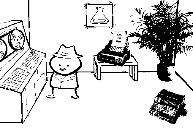 The DOT MATRIX PRINTER churns out a PRINTOUT.