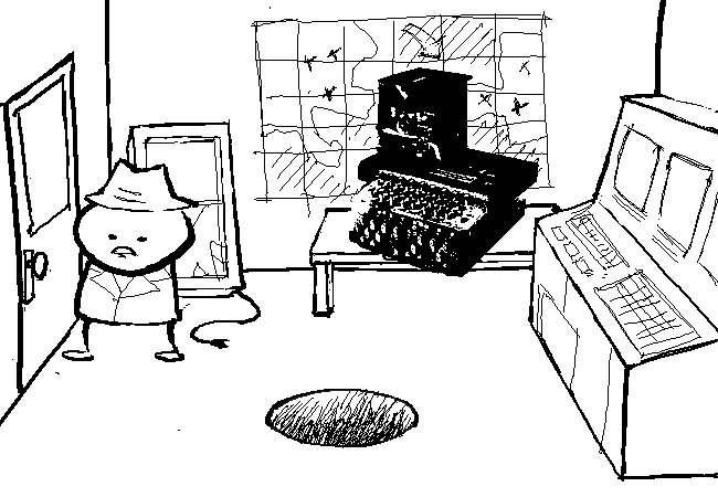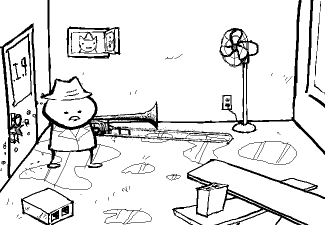 AD: Go back up, then go down to office for other horns.