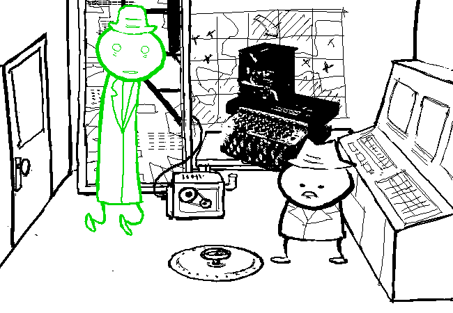 You appear in the past and enter the window to find Ace Dick struggling to solve a difficult puzzle.