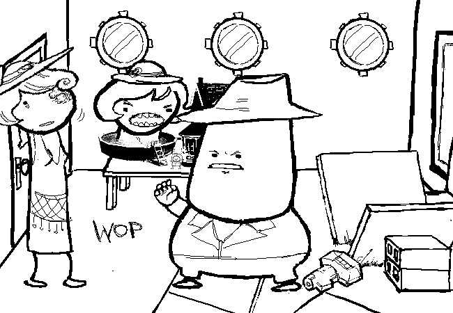 Hysterical Dame is not pleased by Mobster Kingpin's treatment of her housemate.