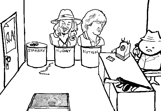 It is the adjacent office. The man at the desk is talking to a client about some sort of problem which requires sleuthing.
