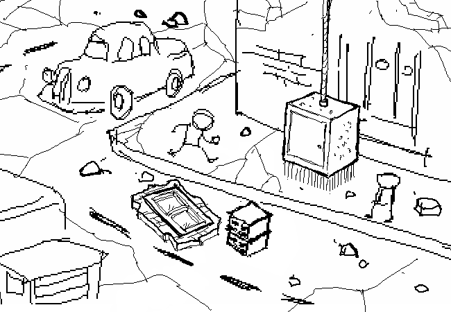The office window is knocked loose to the street below.