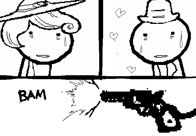 He takes careful aim, but suddenly becomes distracted by that enchanting lady over there. Her beauty is like nothing he's ever imagined.