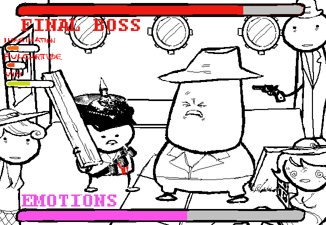 The rising meter drains his IMAGINATION, PULCHRITUDE, and VIM gauges.
