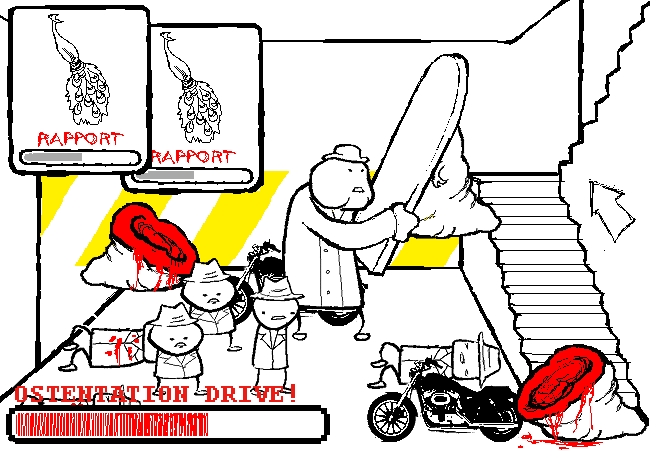 He is collecting all the spoils as he operates, snatching up the prized SPONDULICKS and MUTTONS as they appear. Problem Sleuth seems irked by this conduct, as it was not part of the implied operating agreement in his view. The Muscle's diplomatic skills could obviously use some polish.