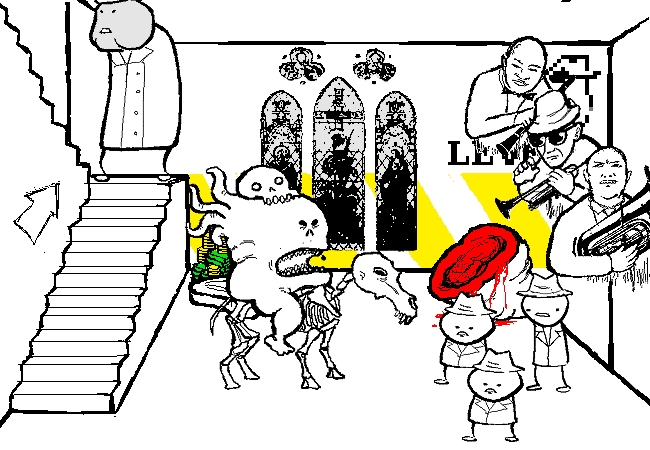 The frightened Zombie Muscle flees upstairs.