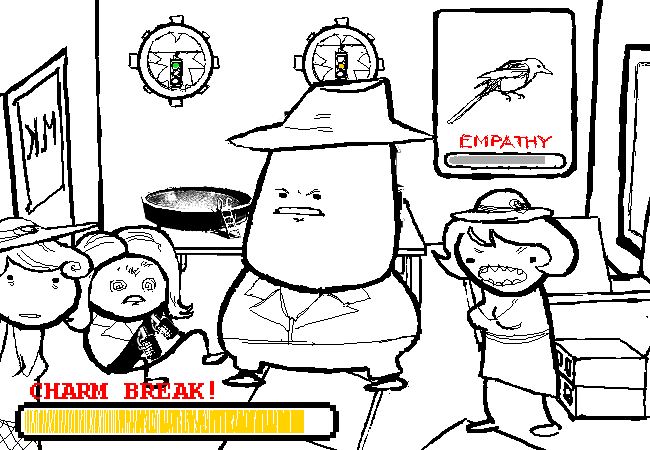 Hysterical Dame's CHARM BREAK! meter is close to maxing out. She experiences a surge in attack power.