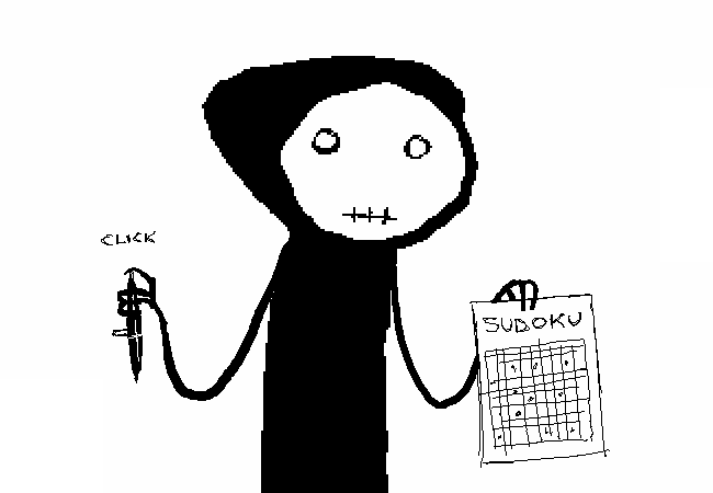 Death clicks his BALL POINT SCYTHE.