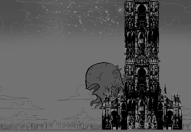 Fluthlu scales the CATHEDRAL OF SYNDETIC ASCENSION.