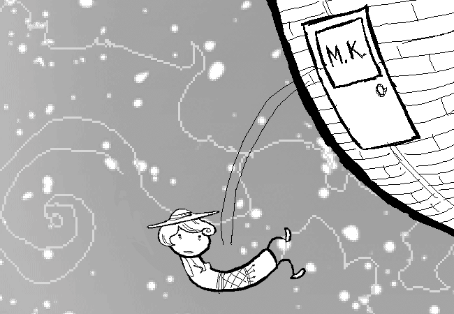 MK pushes her out the window.