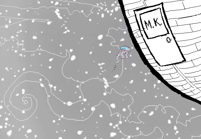 They fly through MK's office window.