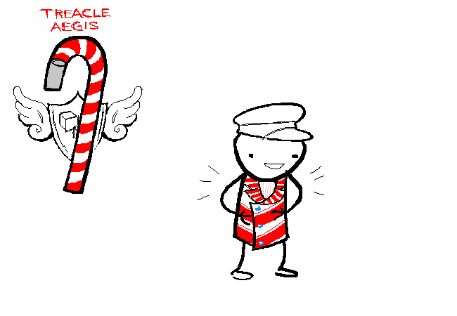 Your armor's TREACLE AEGIS gauge takes a hit, but you're otherwise undamaged. Looks like the candy coat is doing the trick!