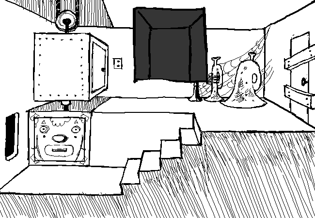 You climb into the elevator, sometimes called a dumbwaiter. It's pitch black inside. There's only one direction to go.