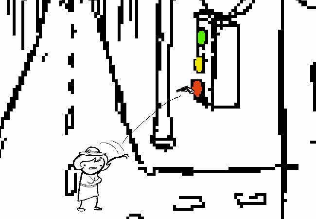 Waiting for a gap in the cinder block cycles, you start with the HANDGUN, lobbing it into the PORT SIDE RED LIGHT.