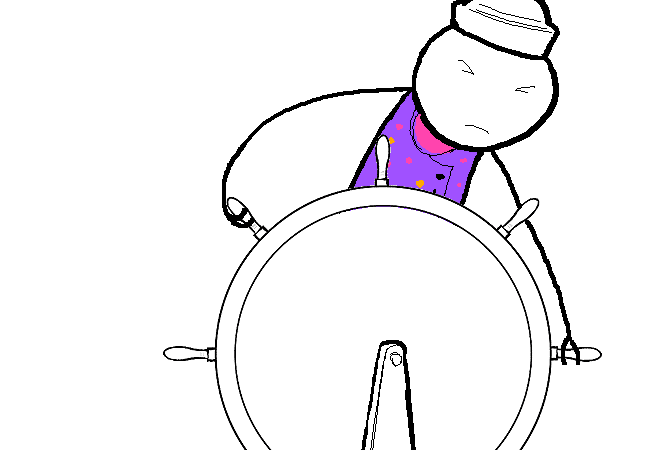 The Skipper puts a mean spin on the ship's WHEEL.