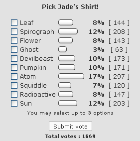 Jade remained asleep through it all, trying to stay on the moon as long as she could until she figured out how to wake John up. She talked about this with AT (adiosToreador), who revealed he preferred his dream life on Prospit more than any aspect of the game, and regretted all the trolls' dream selves were now dead. Jade expressed surprise at the notion of dream self mortality.